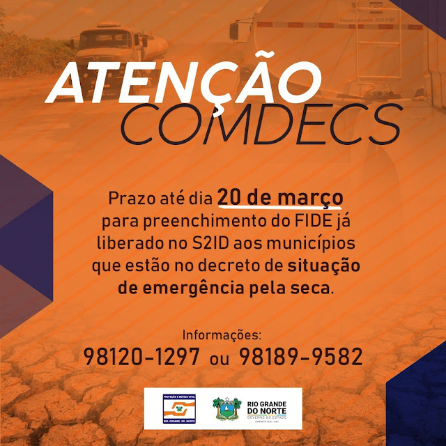 www.s2id.mi.gov.br, até o dia 20, para que a Defesa Civil envie o processo de